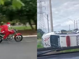 Um motociclista fantasiado de Papai Noel provocou infrações no trânsito e ocasionou o capotamento de uma viatura da Polícia Militar em Matão, SP. Embora o incidente tenha ocorrido na referida data, apenas recentemente as imagens