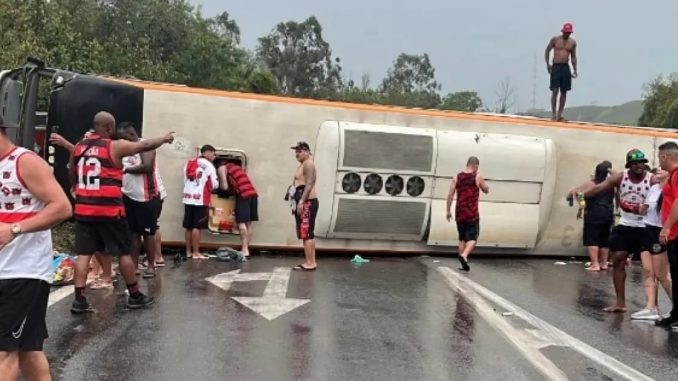 Um ônibus que levava torcedores da Urubuzada, organizada do Flamengo, tombou na tarde desta segunda-feira (27) na Via Dutra, em Barra Mansa (RJ). Segundo a Polícia Rodoviária Federal (PRF), 16 pessoas ficaram feridas no acidente, ocorrido por volta das 16h20, no km 282, sentido São Paulo.