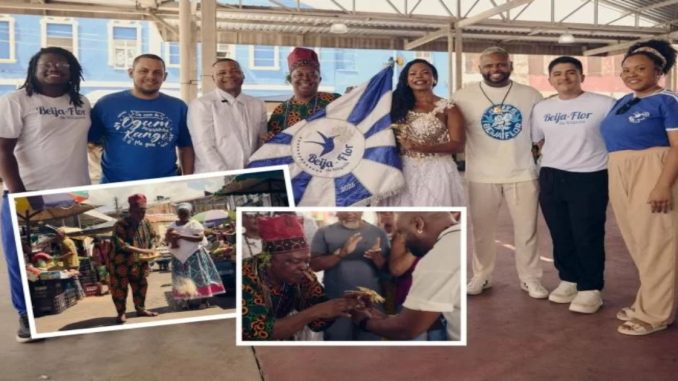 A Beija-Flor de Nilópolis revelou o enredo do Carnaval 2026: o Bembé do Mercado, tradicional celebração de religiões de matriz africana realizada em Santo Amaro da Purificação, na Bahia. Considerado o maior candomblé de rua do mundo, o evento acontece anualmente no dia 13 de maio e reúne mais de 60 terreiros. Com mais de 130 anos de história, o Bembé surgiu logo após a abolição da escravidão e simboliza resistência, ancestralidade e fé do povo preto.