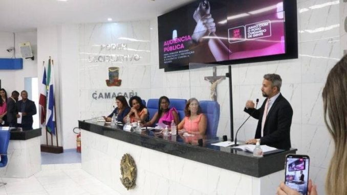 A Câmara de Camaçari vai criar a Comissão Especial de Combate à Violência contra a Mulher. O anúncio foi feito pelo presidente da Casa, vereador Flávio Matos (União), durante Audiência Pública que tratou sobre medidas de proteção e prevenção à violência contra a mulher. A atividade, realizada na manhã desta sexta-feira (10/03), no plenário da Casa Legislativa, foi proposta pela Mesa Diretora da Câmara e presidida pela vereadora Professora Angélica (PP).