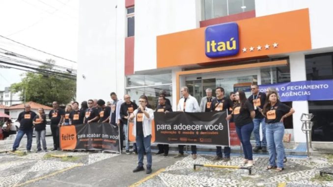 Na mesma manhã, os manifestantes se deslocaram para a agência do Banco Itaú, também na Avenida Getúlio Vargas. O foco do protesto foi as demissões em massa promovidas pela instituição financeira, que afetaram aproximadamente mil funcionários em todo o país. Em Feira de Santana, de cinco agências do Itaú, restam apenas duas em funcionamento, sendo uma delas modelo Personnalité. Maria da Conceição Santana Rebouças, diretora de saúde do Sindicato dos Bancários, informou que três funcionários foram demitidos recentemente na cidade.