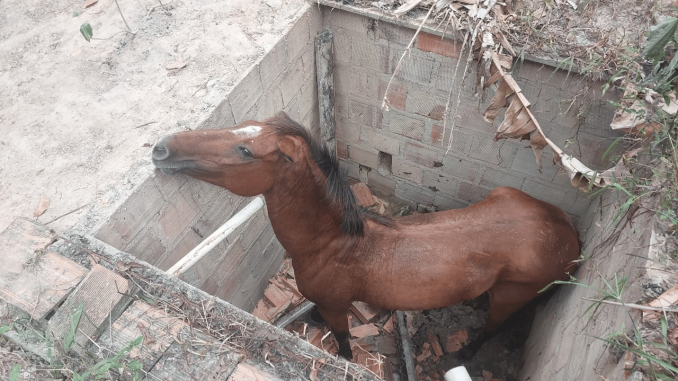 Uma guarnição de busca e resgate do 10º Batalhão de Bombeiros Militar (10º BBM), em Camaçari, resgatou uma égua que caiu dentro de uma cisterna desativada de aproximadamente dois metros de profundidade. A ocorrência aconteceu nesta quinta-feira (2), no bairro Entroncamento, em Dias D’Ávila.