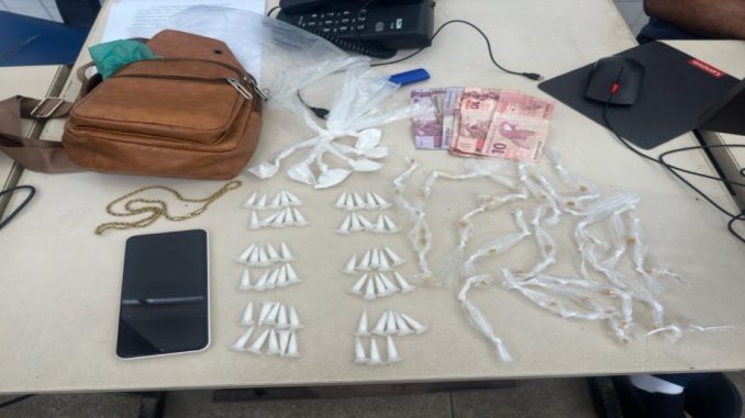 Os militares realizavam patrulhamento no último sábado (24), na Rua Alto do Dendê, no bairro Santo Antônio em Candeias, quando avistaram um homem em atitude suspeita, em posse de uma bolsa. Após abordagem, os policiais encontraram, no interior da sacola, 64 porções de cocaína, 38 pedras de crack e dinheiro em espécie.