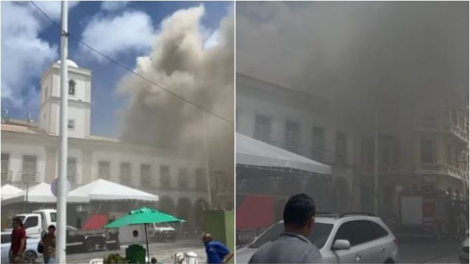 Um incêndio de grandes proporções atingiu a Câmara Municipal de Salvador no início da tarde desta segunda-feira (24). O fogo se alastrou rapidamente, e uma densa fumaça preta pôde ser vista de diversos pontos da cidade. Equipes do Corpo de Bombeiros foram acionadas e trabalham no combate às chamas para evitar que o incidente cause ainda mais danos à estrutura do prédio histórico.