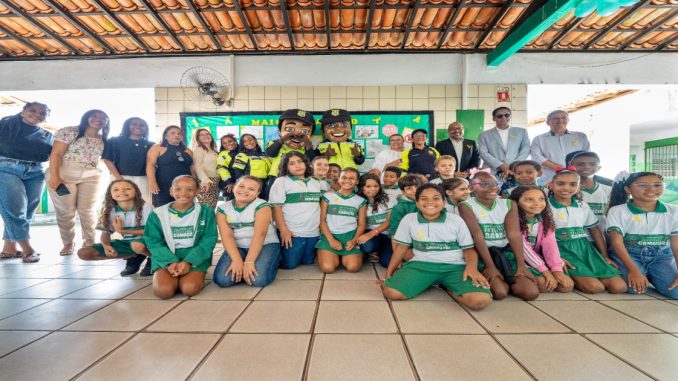 Alunos do 4º ano da Escola Municipal José Alan Ribeiro Paz, na Gleba C, participaram nesta quarta-feira (14) da abertura do Maio Amarelo nas Escolas, em Camaçari. A ação integra o Projeto Os Caminhos da Escola – Zona 30, promovido pela Superintendência de Trânsito e Transporte Público (STT), em parceria com a Secretaria da Educação (Seduc). A proposta é levar conscientização sobre o trânsito de forma lúdica para o ambiente escolar.