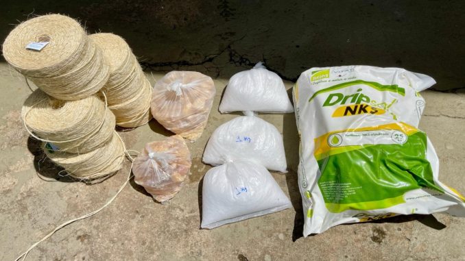 Os militares realizavam rondas na cidade, quando flagraram dois indivíduos sem capacete em uma moto. Durante a abordagem, os militares constataram que os dois homens transportavam cinco rolos de barbante de sisal, um saco com 25kg de nitrato de potássio, 3kg de parafina e 3kg de breu, materiais utilizados na fabricação de espadas. Os indivíduos e o material foram encaminhados para o registro da ocorrência junto à Polícia Civil.