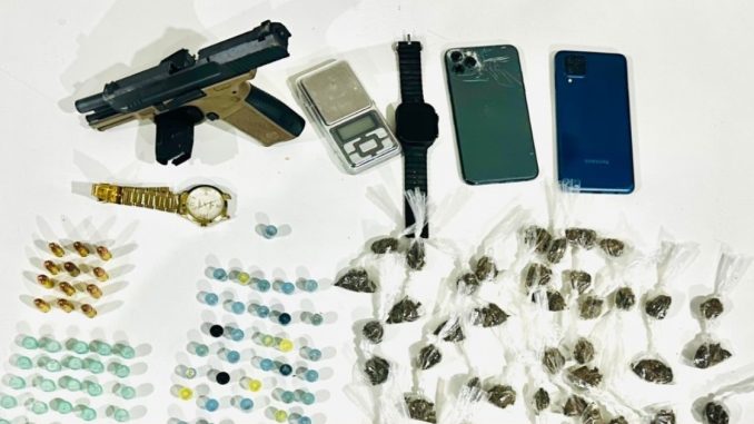 Policiais militares da Companhia Independente de Policiamento Especializado (Cipe) Polo Industrial apreenderam arma e drogas com dois indivíduos na Avenida Santos Dumont, em Lauro de Freitas, na noite na noite de sábado (7). Durante intensificação