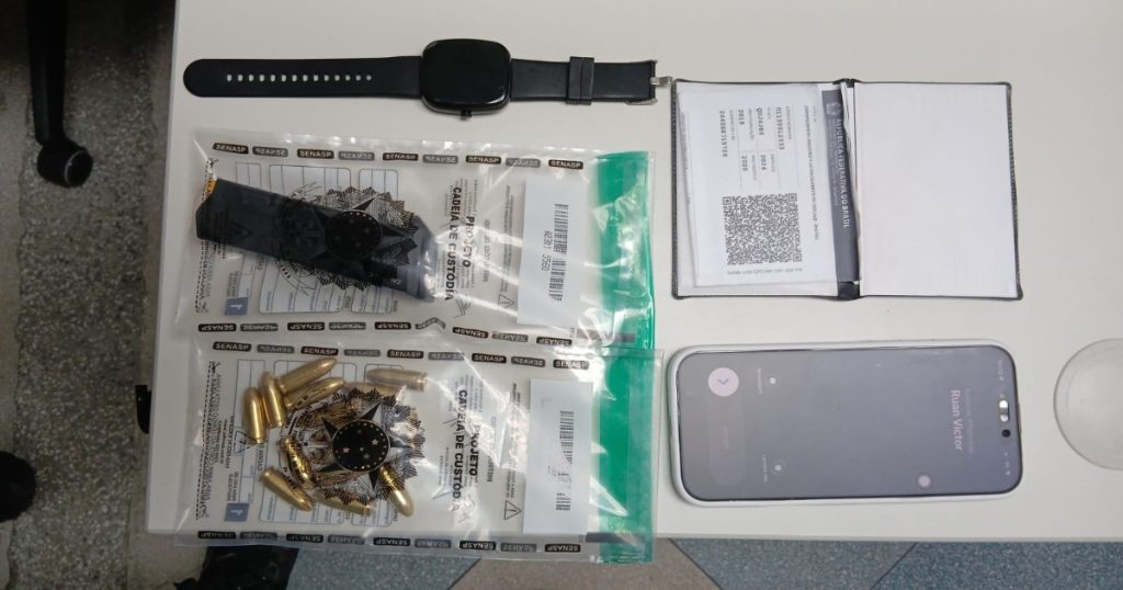 O homem saiu do automóvel e foi imediatamente imobilizado e algemado. Na busca veicular, os policiais encontraram um carregador de pistola calibre 9mm, quinze munições calibre 38 TPC, um celular, duas chaves e o veículo Ford Ka placa QUJ-4J86. Todo o material e o suspeito foram apresentados na 18ª Delegacia para as medidas cabíveis.