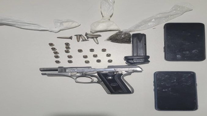 Após abordagem, foram encontrados com ele uma pistola calibre 380 com um carregador, 19 munições, oito recipientes de cocaína, uma porção de maconha e dois celulares. O indivíduo e todo material apreendido foram encaminhados à 18ª DT para adoção das medidas cabíveis.