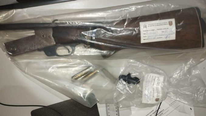 No local, foram encontradas uma espingarda e munições de calibre 32 e uma porção de maconha.