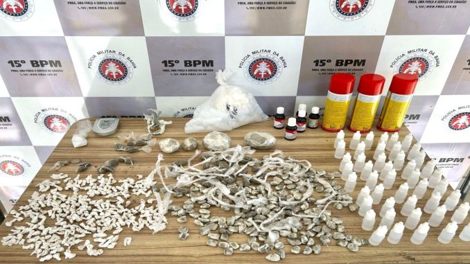 Na manhã desta quarta-feira (26), policiais militares do 15º Batalhão apreenderam maconha, crack, cocaína e lança-perfume no bairro Nova Ferradas, em Itabuna.