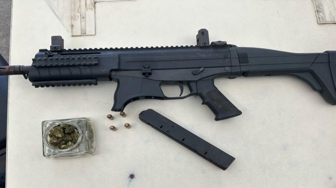 Policiais militares da 10ª CIPM apreenderam uma submetralhadora, munições e maconha, na tarde de quinta-feira (27), em Candeias.