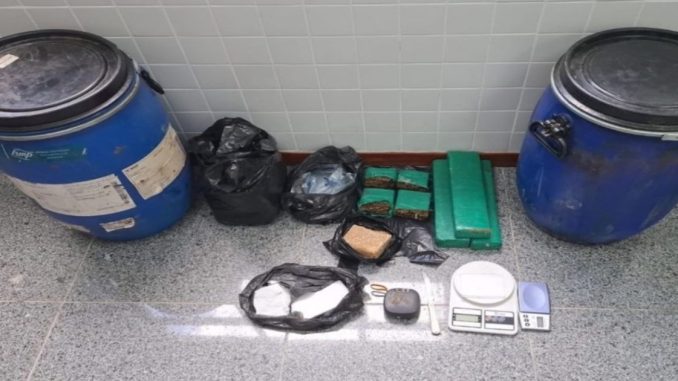 Os agentes faziam rondas na localidade quando avistaram o homem em atitude suspeita. Ao perceber a presença da polícia, ele tentou fugir, mas logo foi alcançado. Na abordagem, os militares identificaram que ele era procurado pelos crimes de homicídio e tráfico de drogas. Além disso, o suspeito portava três tabletes de maconha e quatro porções da mesma droga, duas pedras de crack, duas barras de cocaína e balanças de precisão.