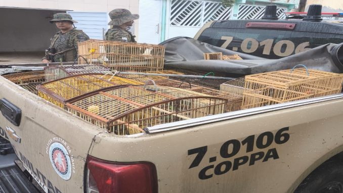 Policiais militares da Companhia Independente de Polícia de Proteção Ambiental (Coppa) apreenderam 22 aves silvestres na manhã de sábado (4), no município de Catu. Durante uma operação de fiscalização ambiental, os agentes encontraram com um homem seis papa-capins, cinco cardeais, dez canários-da-terra e um coleirinho. As aves foram encaminhadas ao Centro de Triagem de Animais Silvestres (Cetas), enquanto o suspeito foi levado à Delegacia de Alagoinhas, onde o caso foi registrado. A ação reforça o combate ao tráfico e à captura ilegal de animais silvestres no estado.