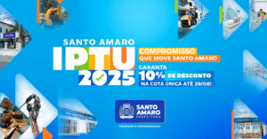 A gestão municipal reforça que pagar o IPTU é um ato de cidadania e participação ativa na construção de uma Santo Amaro mais justa, segura e com mais qualidade de vida para todos.