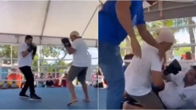 Uma luta amistosa entre o prefeito de Mata de São João, Bira da Barraca (União Brasil), e o secretário municipal de Educação, Wellington Lázaro, terminou com um nocaute inesperado. O confronto, ocorrido neste domingo (6), teve início descontraído, mas ganhou contornos de seriedade quando o secretário partiu com tudo para cima do prefeito. Bira reagiu rapidamente e encerrou o duelo em apenas dez segundos.