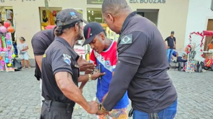 A cena foi registrada por uma testemunha que filmou o incidente, e as imagens rapidamente se espalharam nas redes sociais. O vídeo mostra o vendedor sendo segurado por pelo menos três agentes municipais. Um deles arranca a grelha de sua mão e se afasta, enquanto a situação se intensifica, resultando em mais agressões ao jovem.