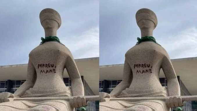 O caso ganhou grande repercussão pela imagem da estátua da Justiça marcada com batom, símbolo que marcou os atos violentos contra instituições brasileiras em janeiro.