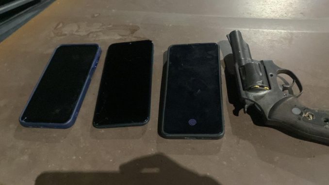 Policiais militares da 35ª CIPM apreenderam uma arma de fogo com dois suspeitos de roubo, na noite de quarta-feira (30), na Av. Tancredo Neves.