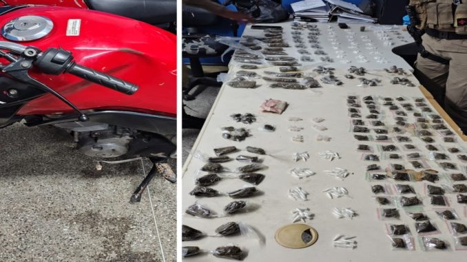 Na ação, foram apreendidos 372 porções de cocaína, 50 de crack, 73 de maconha e 60 de k9, além de dinheiro em espécie e a moto utilizada pela dupla, que os policiais constataram, após consultas, se tratar de um produto de roubo. O trio foi conduzido para a 22ª DT, onde a ocorrência foi registrada. (Ascom)