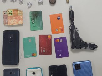 Policiais militares do 12º BPM apreenderam uma arma e uma quantidade de drogas na noite de quinta-feira (26), na Rua Tapajós, localizada no bairro Phoc III, em Camaçari. A ação ocorreu após denúncias apontarem a