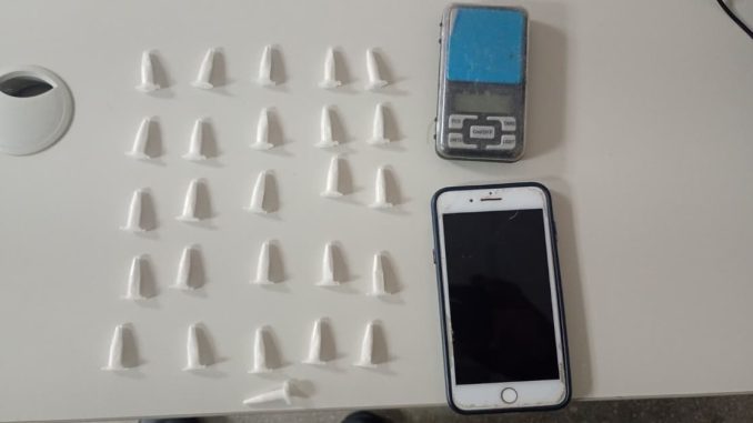Durante patrulhamento de rotina, equipes da CETO receberam denúncia sobre um homem suspeito de tráfico de drogas na Rua da Ciclovia. Segundo populares, o indivíduo vestia camisa preta, bermuda verde e carregava uma bolsa preta.