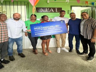 Na manhã de hoje (18), o vereador Dilson Magalhães Jr (PP) fez a entrega simbólica de um cheque no valor de R$ 350 mil para a Associação de Pais e Amigos de Excepcionais de Camaçari