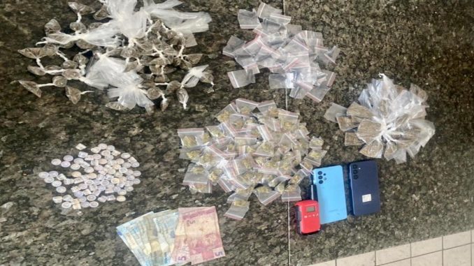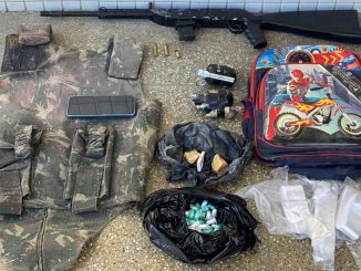 Na manhã do último domingo (3), policiais militares da Companhia Independente de Policiamento Tático -BTS apreenderam granada, armas e drogas na Rua Teotônio Vilela, em Fazenda Coutos. Os pms realizavam rondas, quando avistaram um homem