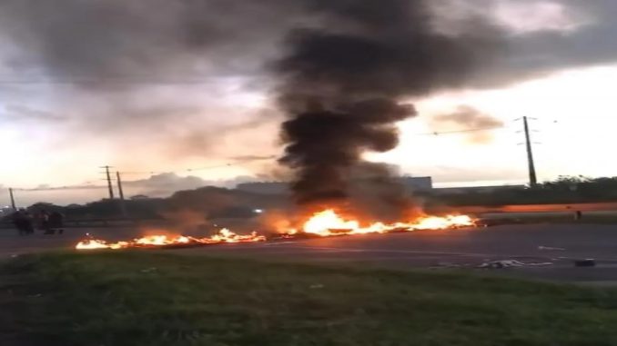 Moradores do distrito de Parafuso, em Camaçari, interditaram na manhã desta quinta-feira (5) o km 13 da BA-535, conhecida como Via Parafuso, em protesto contra a suspensão da entrada dos ônibus da empresa Avanço na